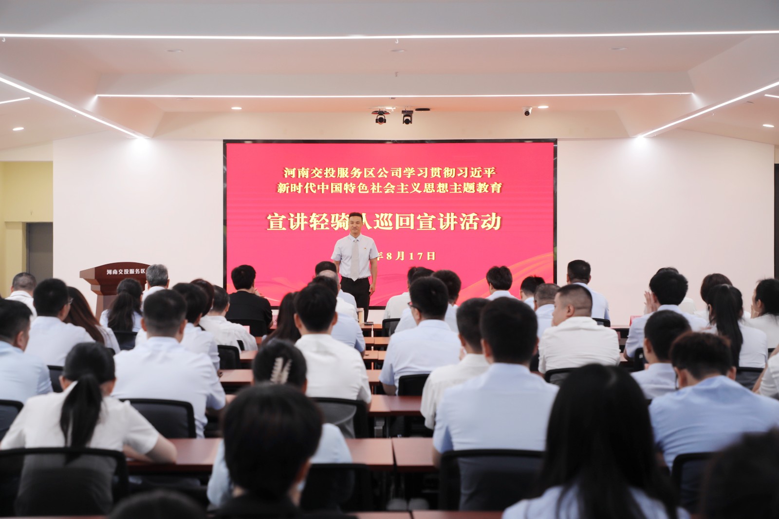 來源: 本站 發(fā)布時(shí)間: 2023-08-17為持續(xù)推進(jìn)學(xué)習(xí)貫徹習(xí)近平新時(shí)代中國特色社會(huì)主義思想在公司走深走實(shí),推動(dòng)黨的創(chuàng)新理論在公司落地生根。8月17日,公司開展主題教育宣講活動(dòng),并觀看紅色愛國電影,公司在鄭領(lǐng)導(dǎo)班子,原交發(fā)集團(tuán)和鼎公司在鄭領(lǐng)導(dǎo)班子,公司本部全體黨員職工共100余人參加了活動(dòng)。宣講輕騎隊(duì)以…