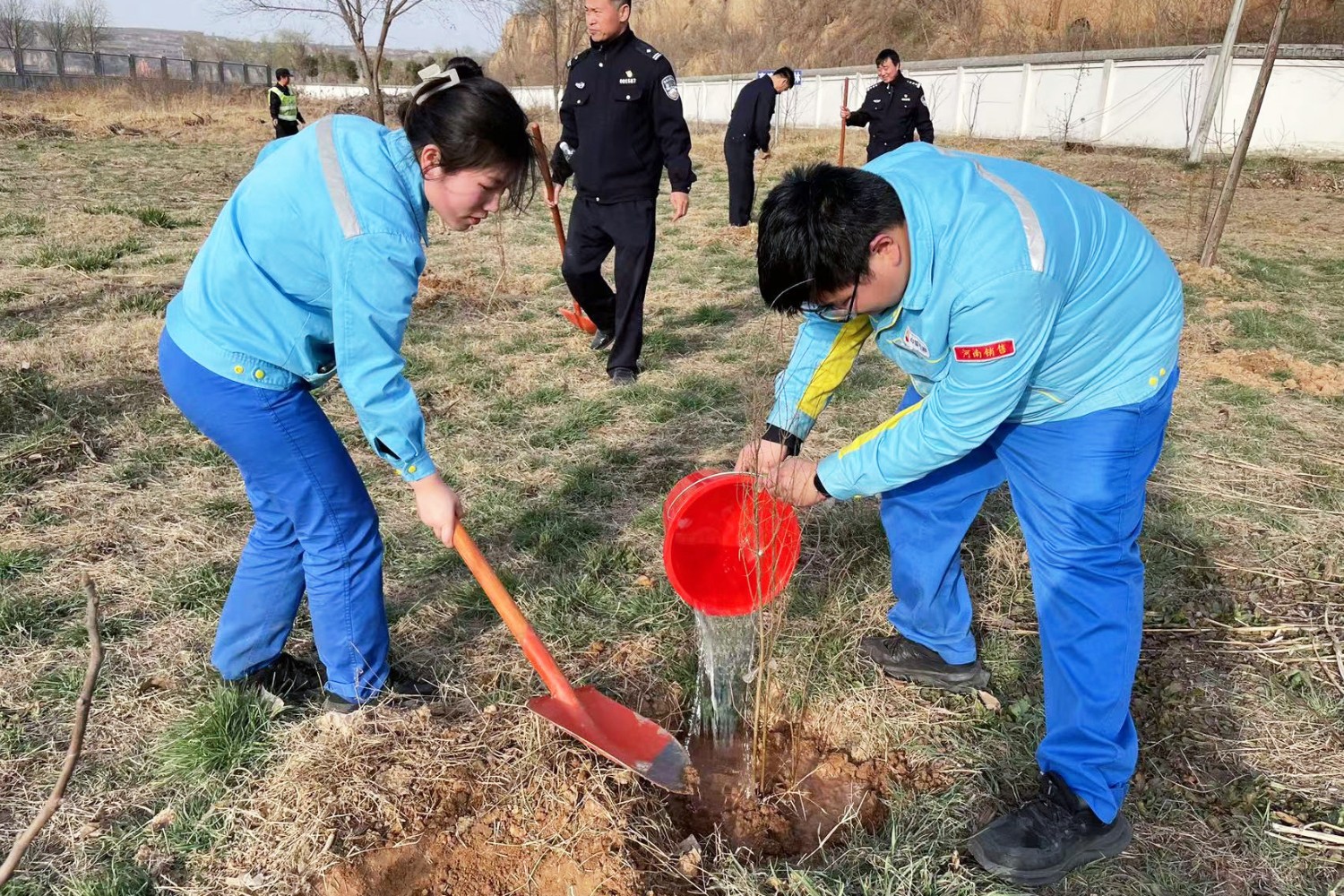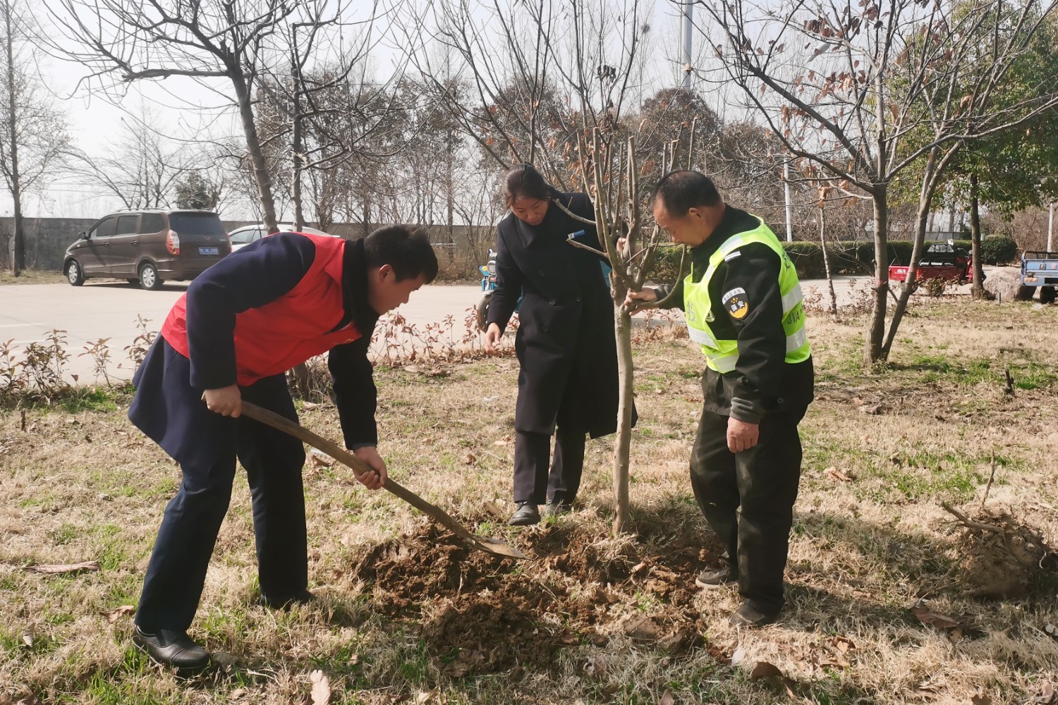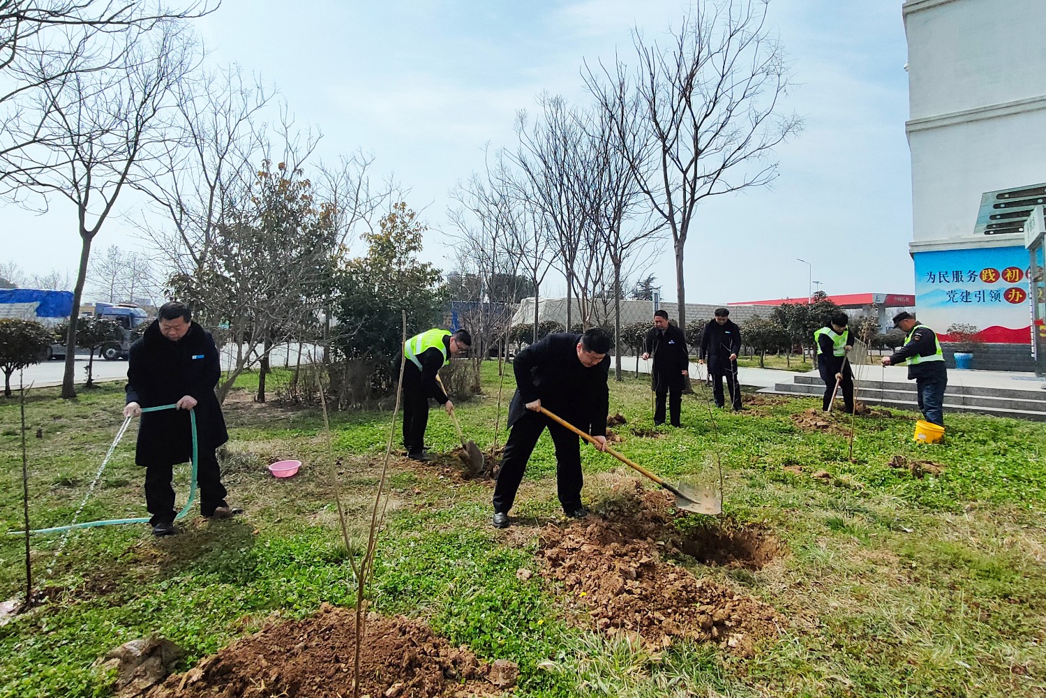 活動現(xiàn)場,大家熱情高漲、干勁十足,揮锨鏟土、栽種樹木、培土圍堰、踩土壓實(shí)……每個環(huán)節(jié)都配合默契,整個過程細(xì)致認(rèn)真、有條不紊。一番勞作后,為服務(wù)區(qū)添了一抹亮麗的新綠,也為春日大地增添著勃勃生機(jī),大家用實(shí)際行動詮釋守護(hù)綠水青山的初心與使命。