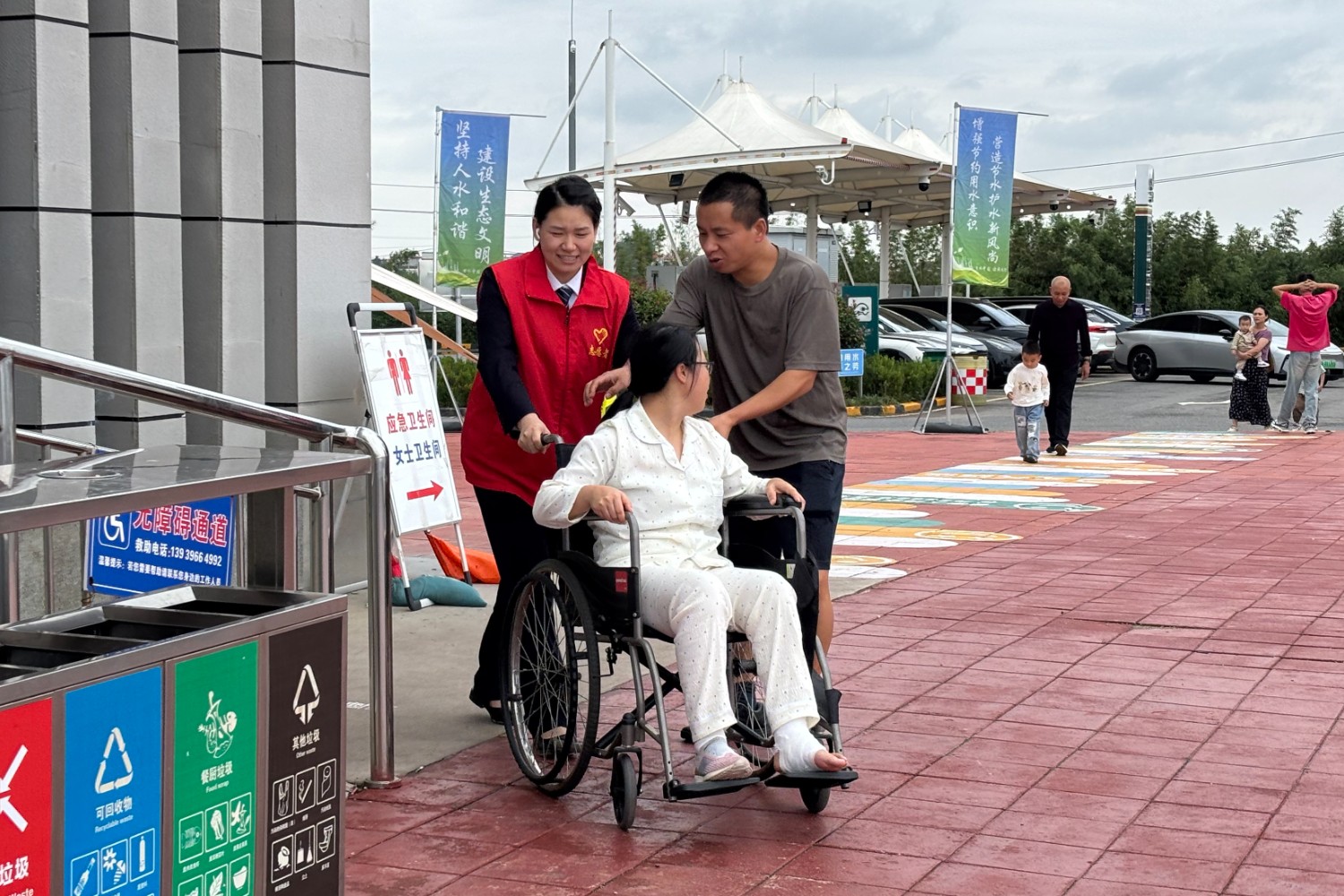 “享同心同行”——升級便民服務臺,為司乘提供免費熱水、車輛維修、應急藥品,“志愿紅”化身“多面手”,穿梭在忙碌的服務區為司乘提供交通疏導、路線規劃、景點推薦等便民暖心服務,38對服務區司機之家為貨車司機提供免費洗衣、淋浴、臨時休息、共享廚房等專屬服務,廣大職工以實際行動呵護司乘人員安全健康出行。