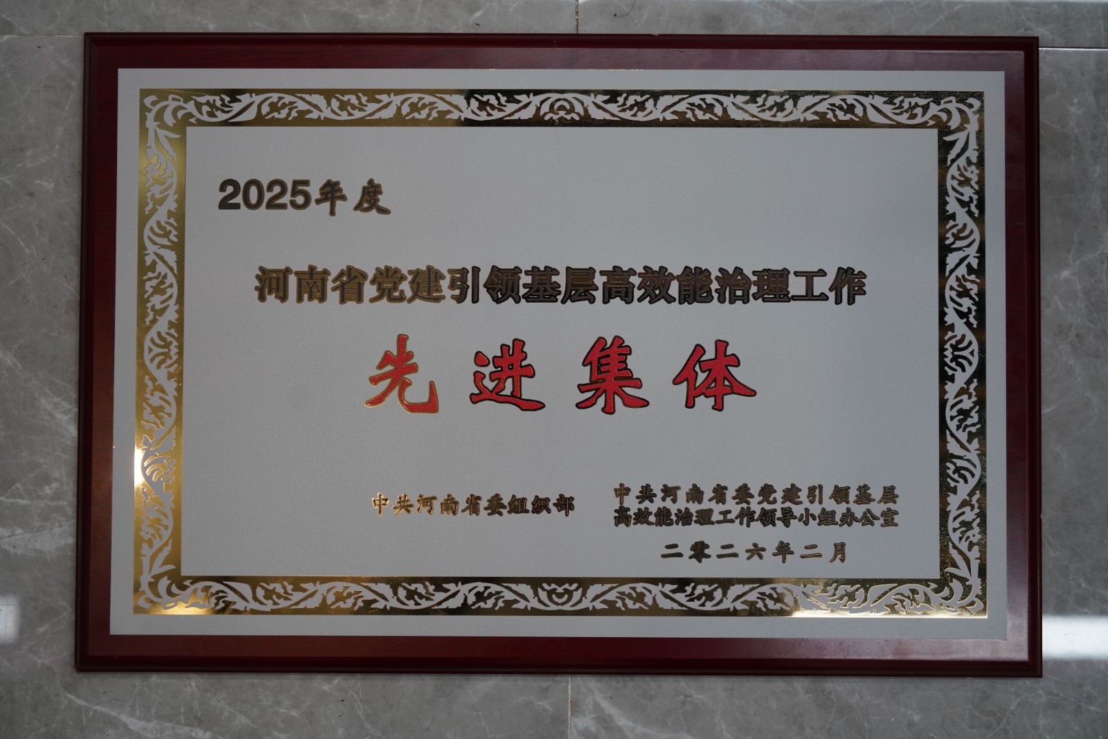 公司榮獲“2025年度河南省黨建引領基層高效能治理工作先進集體”榮譽稱號
