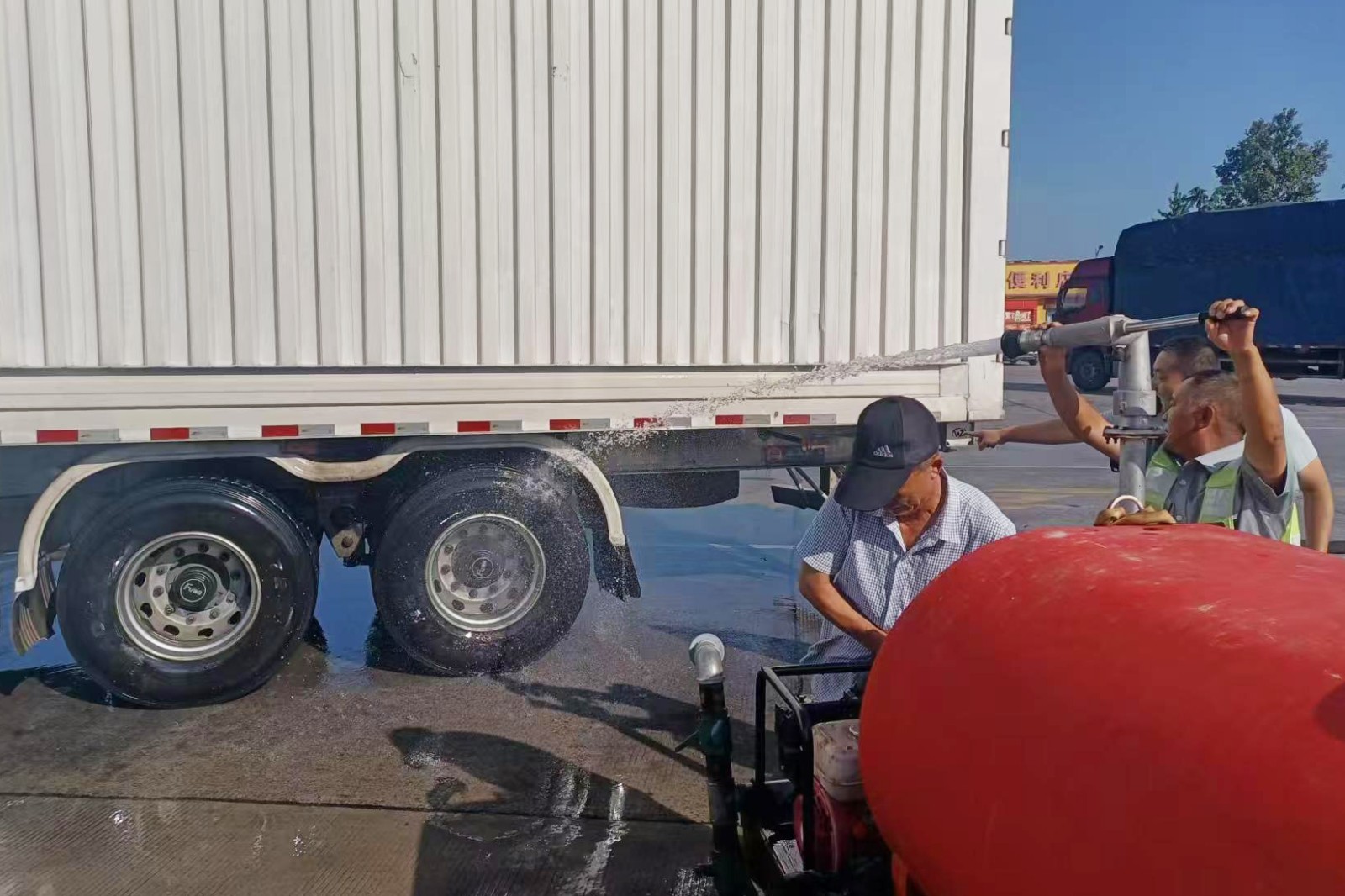 8月11日23時許,一輛載滿貨物的大貨車冒著滾滾濃煙緊急駛入鄭州服務區,服務區立即啟動消防應急預案,疏散周圍車輛及人群并撥打119火警電話,對著火車輛展開救援。因貨車起火位置不明確,無法用滅火器滅火,工作人員將貨車指引至南區降溫加水處打開水龍頭對貨車進行降溫滅火處…